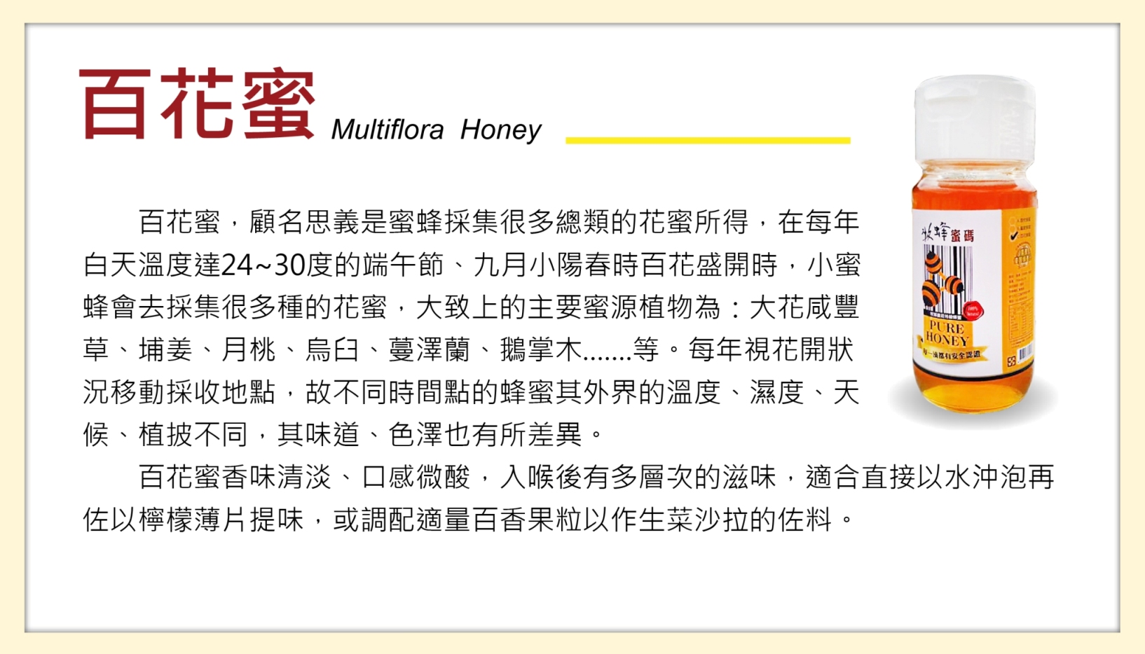 ★ 百花蜜口感酸甜、花香四溢
