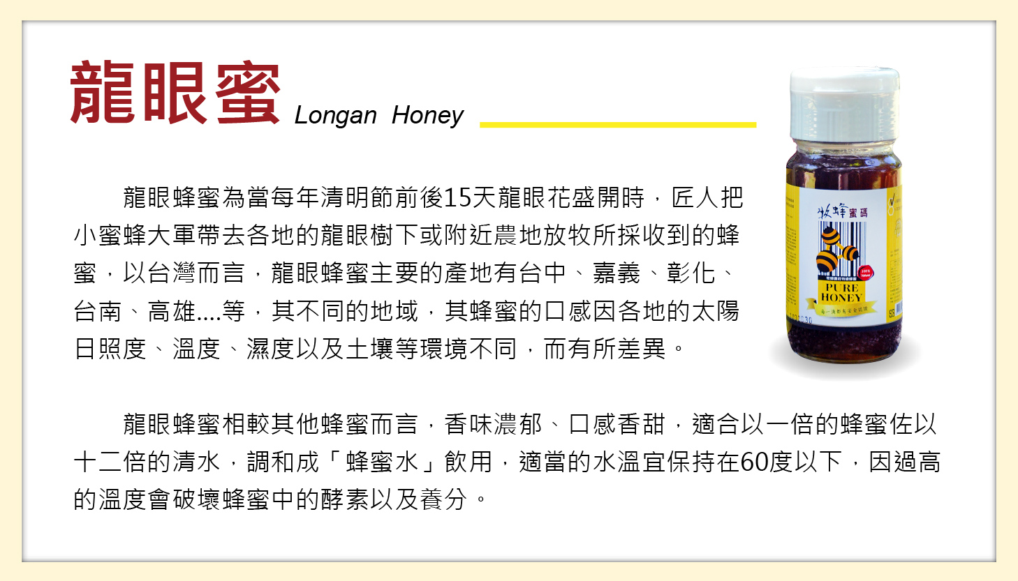 ★ 龍眼蜜香氣濃郁、滋味香甜