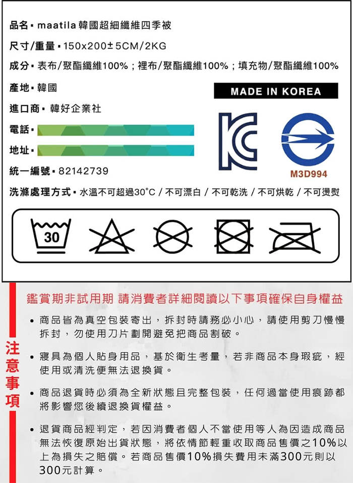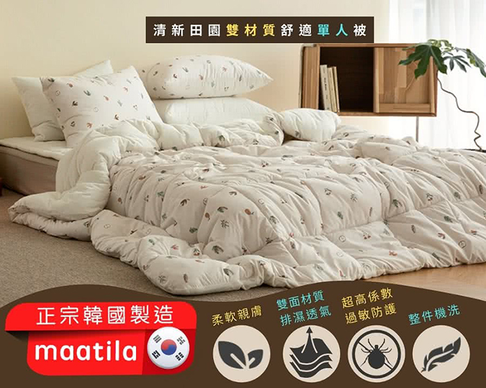 | 【品名】maatila清新田園韓國被 (單人) 《韓國棉特色》 《台灣一年四季最實用的被子》
